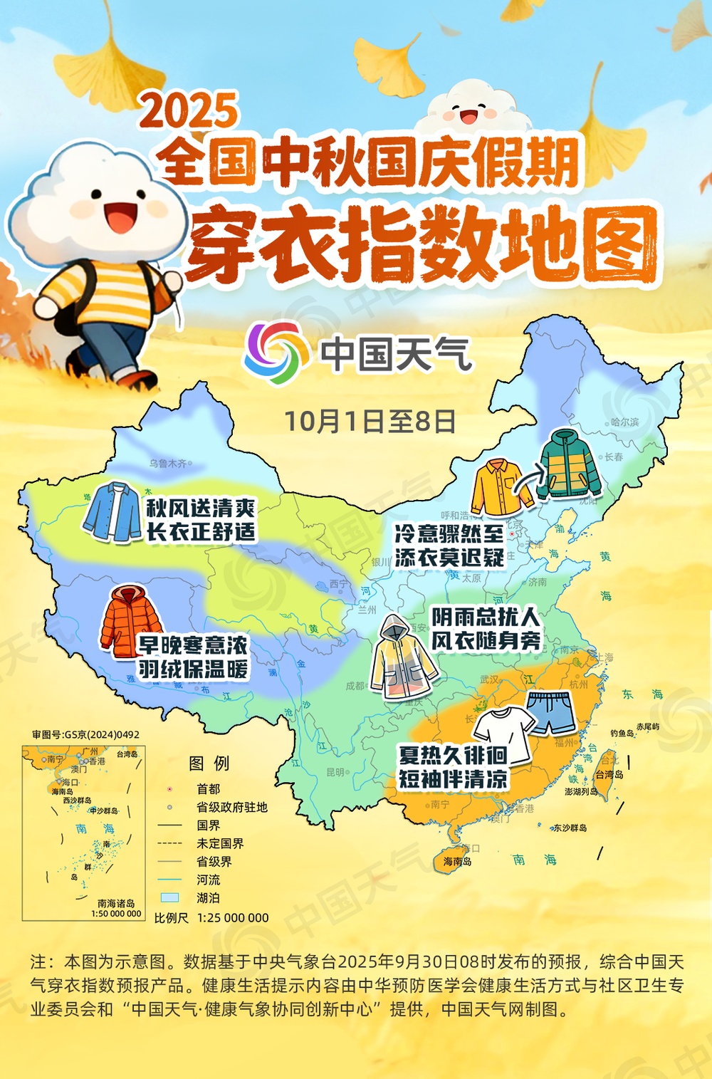 假期期间的全国天气仿佛一幅冷暖交织的拼图,既有秋高气爽的惬意,也有风雨添扰的挑战。各地体感温度也差异显著,出行请根据当地天气变化合理安排,做好健康防护。