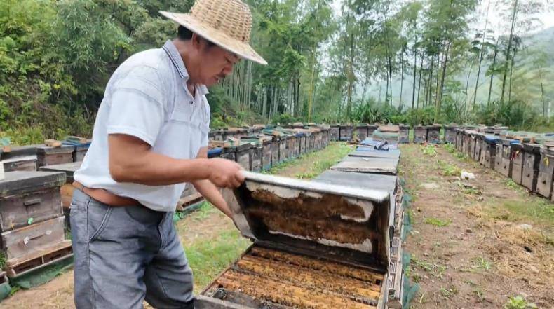 “养蜂已经25年了。一开始两家合用一辆车,就养六七十箱;现在规模扩大了,有一百七十多箱。”熊成元一边打理蜂箱,一边回忆自己的养蜂生涯。二十五年间,他始终对蜂蜜品质有着执着追求。为获取最纯净的蜜源,他常年追花逐蜜,辗转于全国各地的深山,让蜜蜂在自然环境中采撷百花精华。